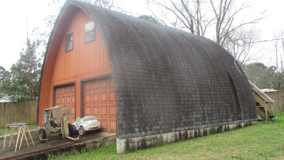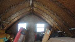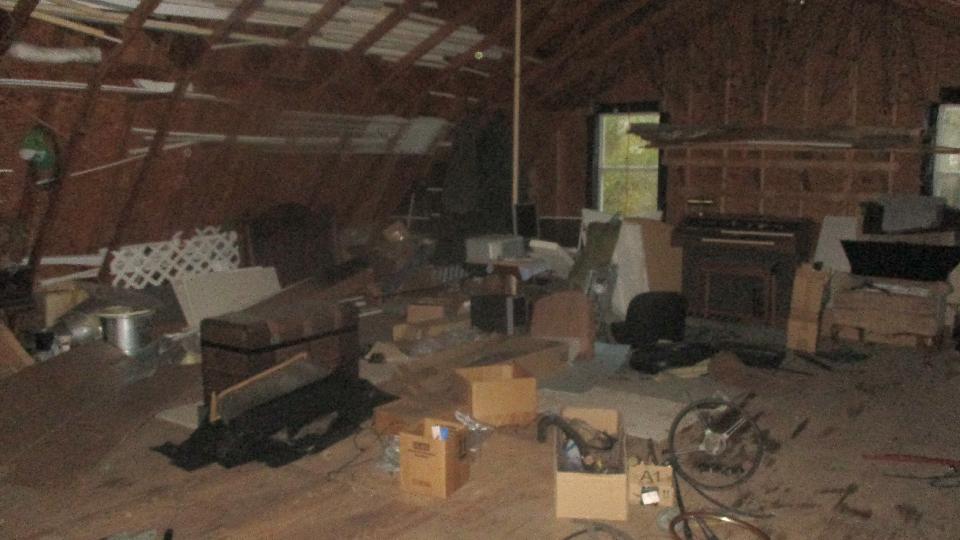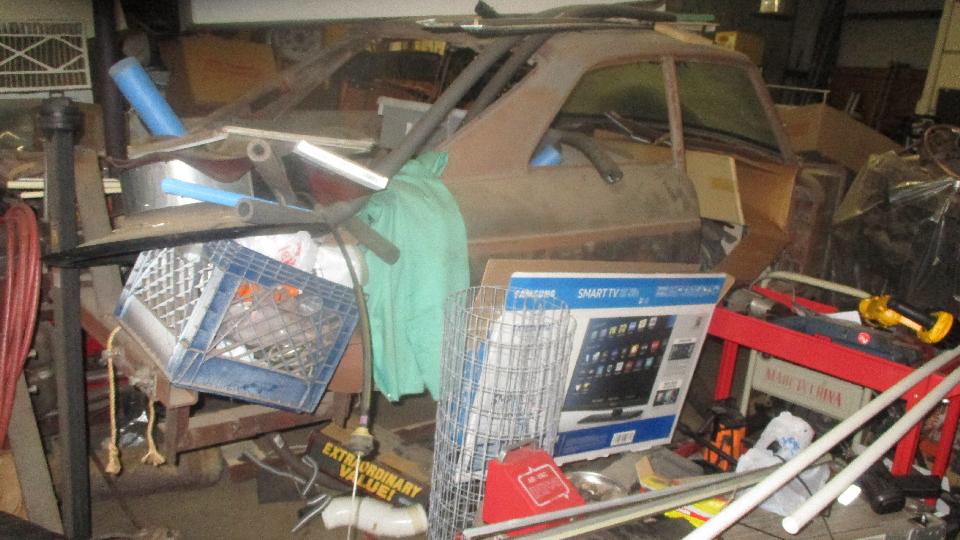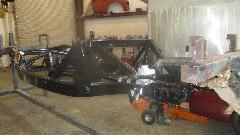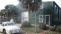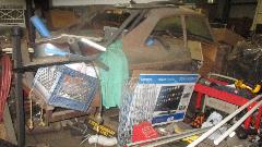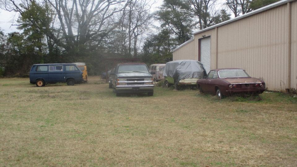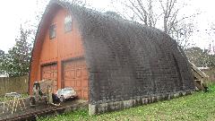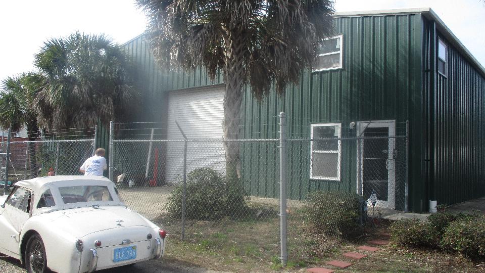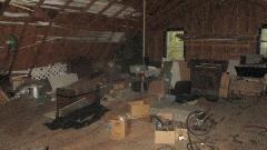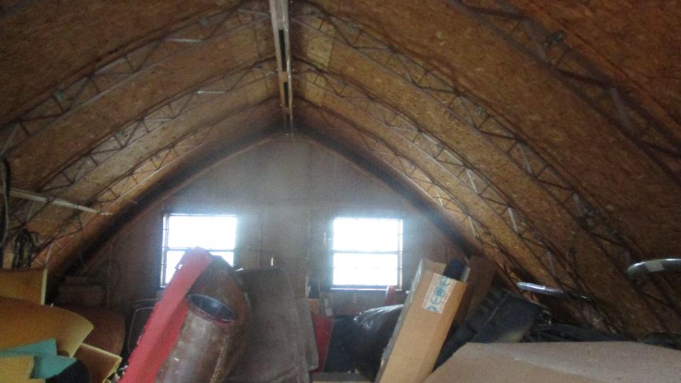 Ah, morning, so let's check out the attic. Plenty of treasure parts up here, but I was more interested in the Gothic arch structure of the building. Then we were off to visit their "new" property a few miles away. Measure this in acres, mostly high and dry, except it has been raining for days. The slightly soggy ground is delaying delivery of a storage cabinet, 8x40 feet. Meanwhile check out the existing building, 60x100 feet with 14 foot side walls. Just inside the front door center and left is an apartment, sufficient for living there while they will be building a new home out front.