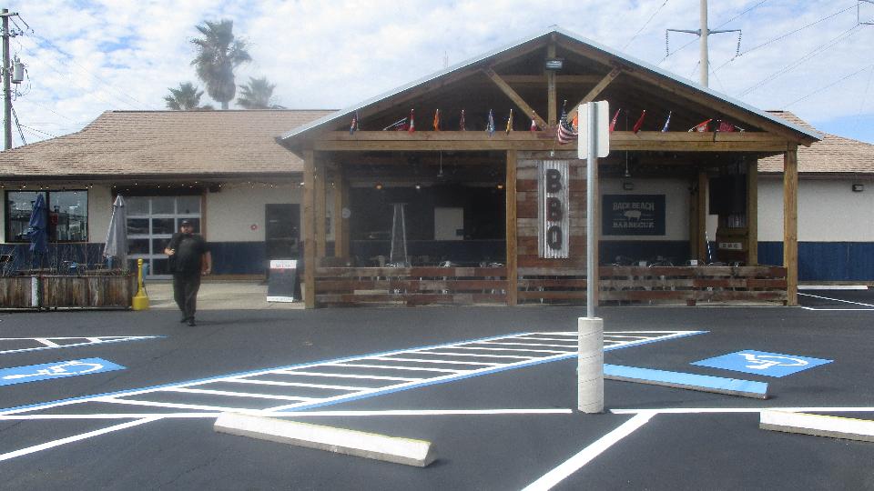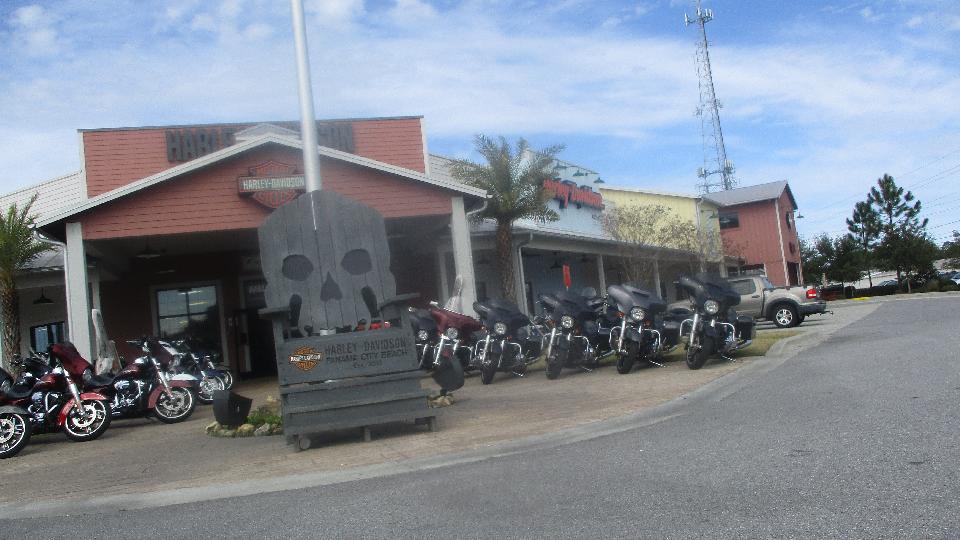 Here's a day that almost didn't happen. We dropped by the club shop at 10-am, and there was no one there. So we were in the process of heading north, just made a fuel stop, and got a phone call. Ah, there is still life in Panama City Beach, Florida. We just happen to be in about the right place at the right time, back track six miles, and meet a few of the guys for an early lunch at Back Beach BBQ (on Back Beach Road). Then a brief stop at the local Harley Davidson dealer to inquire out possibly using their parking lot (motorcycle test lot) for a club funkhana. Then back to the club shop where the Ferrari was heading out for a constitutional.