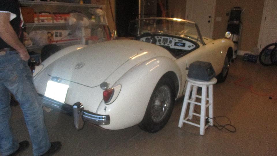 Most of the day spent catching up BBS, email, tech questions, and a few tech page updates. In the evening we shuffled over to meet Lee Oxford & Mary Anne Hanley in Fort Rutker, AL. After some chat time it was getting late, but thought we would check out their back yard workshop. We found an MGC in process of reconstructing the front end, and a modern Mini that looked like it didn't need anything. Too dark in the attic storage, but we can check back in the morning by daylight.