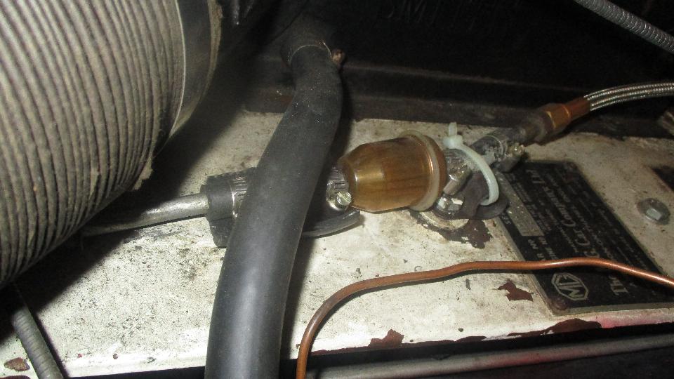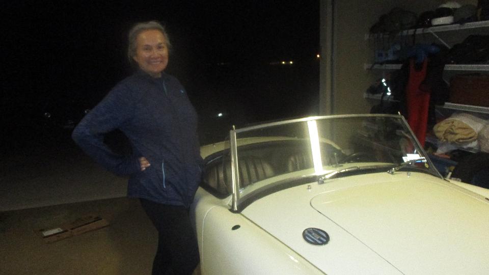 In the early evening Charlie led us over to visit Liz Marr in the Glades of Panama City Beach, which happened to be right around the block from Charlie's home. Apparently they first met while dog walking, but neither one knew that the other had an interest in little British cars. Later on Liz found the local car club on the internet while looking for help with her MGA. Now we end up here to see if we can help. The car had not been running for a while, would crank over but not fire. No ticky, no fuel, dry fuel filter.