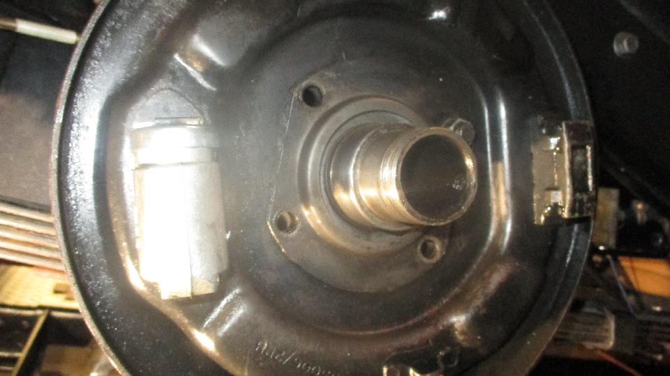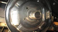 The brake backing plate was secured with one original bolt and three others that were either too long or too small diameter. When I came up short on bolts in the right length, we took a quick trip to a local hardware store to restock fasteners. The RR wheel bearing was just a little bit loose in the rotating hub (where it must be a tight fit), so after cleanup and a new rubber seal we reset teh bearing in the hub with Loctite 620 bearing set adhesive. The alternative would be to replace the worn hub, but this one wasn't all that bad. For the bearing ID, the axle housing was badly worn, so the bearing was reset on the axle using significantly thicker film of Loctite 620. It will be perfectly functional, just means it will need a torch for disassembly next time around.