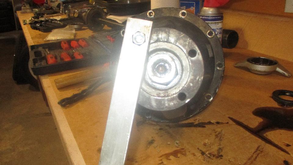 The left rear hub was in better condition with a moderately tight nut and old lacktab washer (although the locktab was not bent up to retain the nut). It was about this time I discovered I didn't have new locktab washers in the magic trailer. Apparently I used those parts for my own differential install last March, and the replacement part didn't make it into the last Moss parts order in mid December. Bummer. Now we need to order parts tomorrow, and hope for delivery by Monday. Meanwhile we installed the one serviceable locktab on the right side to get that bearing hub reinstalled (with the nut cranked up to 150 lb-ft torque an locked this time). It didn't take long to R&R the left rear hub bearing, install a new seal, and get that all reassembled (sans locktab for now).