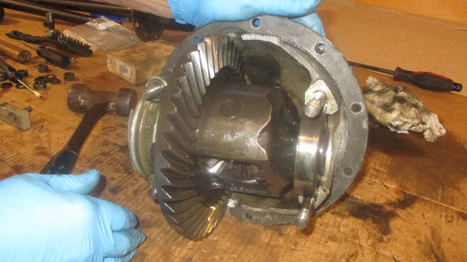 Then we jumped on service for the differential. The input pinion shaft had more than 1/16-inch of free play, end float and sideways wobble, downright ridiculous. I was worried that the tapered roller bearings were completely shot.