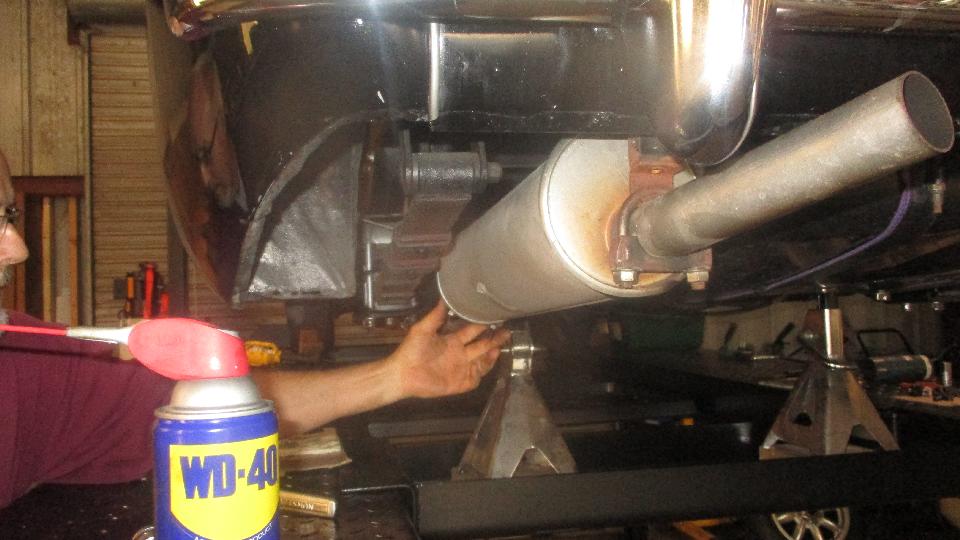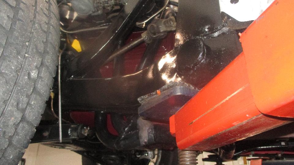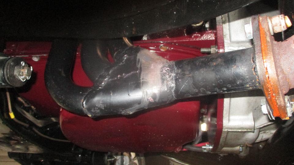Just checking it out, the fuel tank is silver paint (not galvanized), and yes the muffler is upside down (easy fix). Nice 3-into-1 tubular headers (all in one plane), tucks right in between engine and steering column on the LHD car. I hadn't seen this one before, but supposedly off the shelf commercial product.