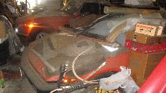 I'm sure I lost track of the number of spare engines sitting around. This one must be a 454 truck engine with automatic trans and parking brake on the tail end. Step through what I thought was the back door, and we were in a paint booth, which was an add-on to the main building. That's a TR8 with the fresh gold paint job and tan rag top (and to my surprise 13-inch wheels which were standard issue).