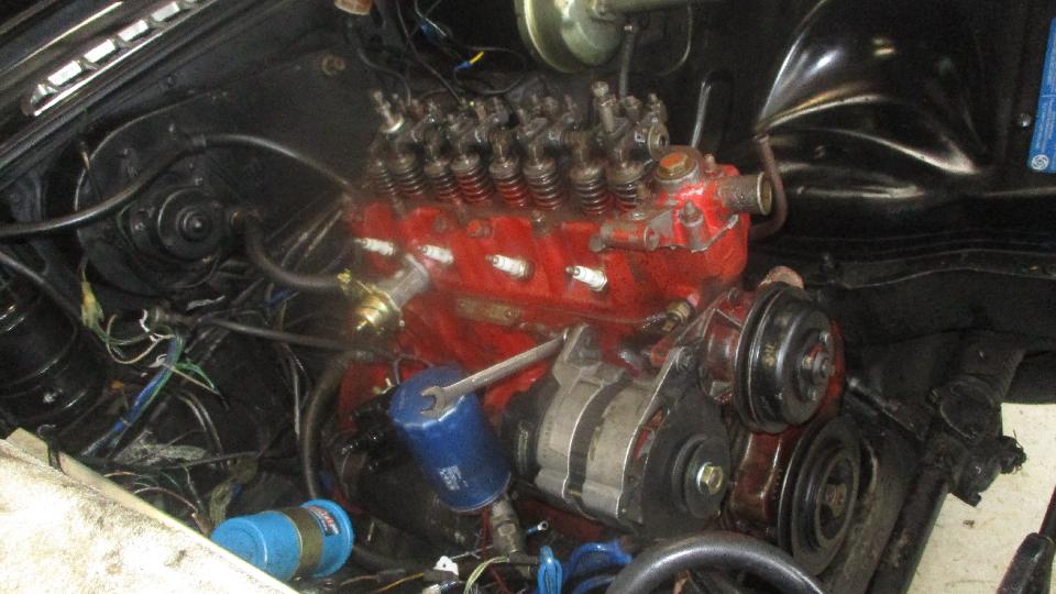 Another issue with the exhaust pipe being two inches short of connecting to the header flange turned out to be a rearward slippage through the rear pipe hanger, easily adjusted. Some fiddle with the heater valve control cable, kind of short and frayed, should be replaced (sometime later). Almost there, getting anxious to see if it would start and run, switch on and power, but no cranking when the key was turned. We recon a couple of wires not yet connected on the starter motor, but getting late and running out of steam, so call it a night and we'll get back to this tomorrow.