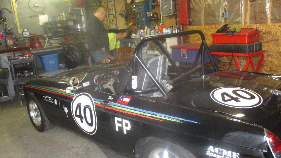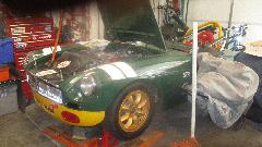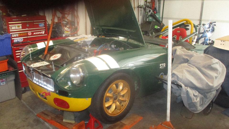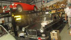 A bit of work left on the carburetors before the MGA will be running again. In the next bay was his MGB race car, lots of jolly good fun, but not being street legal it only gets out occasionally.