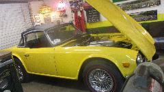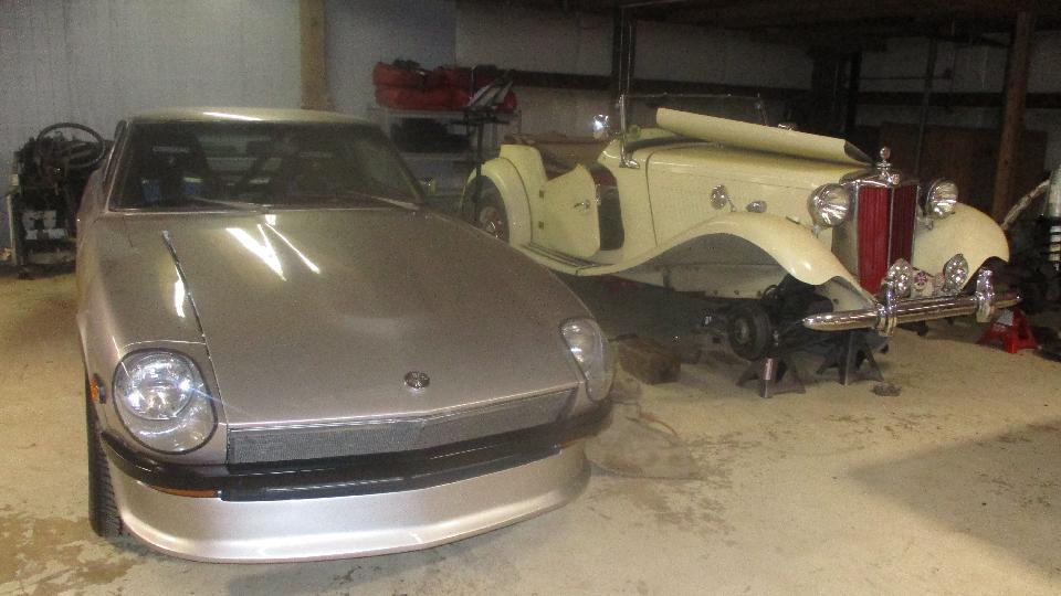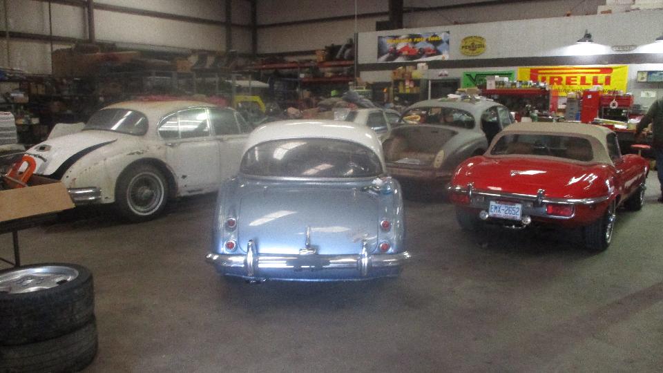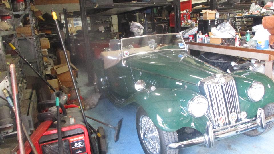 Plenty of vintage British cars in here too, so you may lose count as we browse through the shop. Start with the TR-250 and MGB right up front. And that must be a Datsun 280ZX.