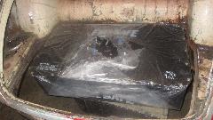 A little more grinding, some quick dry etching primer, and a touch of quick drying lacquer. Not long to reinstall the cover and staple it back in place, haul out a couple new bolts to replace slightly worn ones, and in short order it was back together and ready to roll again. It's just maintenance. Well, during reassembly we found another crack in the base frame tubing, but that can wait for another day. A bit more tape please. These 13 year old 208,000 mile seat covers were supposed to be replaced last year, but we missed the spring fabric sale by a few days when attending to an engine problem. Must be about time for the next fabric sale, so maybe soon.
