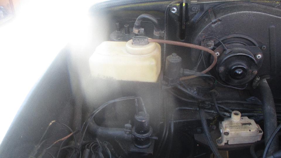 Then we got tied up with electrical issues for the rest of the day. Having to spend some time on our backs under the dash, it was a good idea to conjure up a nice adjustable pillow from a one gallon milk bottle. We had to pull out the dysfunctional horn to clean the points to get it working, no big deal, just grunt work.