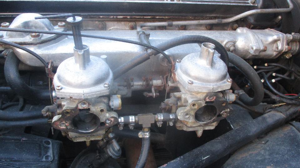 The car was running very rough, likely caused by the dual carbs being badly out of balance. The front carb was essentially closed while the engine must have been running on the rear three cylinders. Balancing the carbs and turning the idle back had nice results. I was about to christen my new Zenith-Stromberg carb mixture adjustment tool, but alas it was a no-go on these carbs. The mixture adjustment here was a screw on the side, so back to basics, and we soon had it running well.