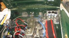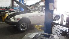 who opened the shop here in 2014. There happened to be an MGB here today, so we could get a picture. The car was running at fast idle, and when switched off it sputtered and ran on badly. I asked, "Weber carburetor"? He replied, "Yes. How did you know"? Weber conversions are almost never done correctly, so we opened the bonnet and had a ten minute chat about how to do it up right, plug the atmospheric vent in the carburetor, tap and drill a new port for a hose connection to the float chamber, install appropriate vent and vacuum hoses, and install a PCV valve (with reference to photos and notes on my web site). This will restore fuel vapor recovery, ant-run-on, and positive crankcase ventilation. Figuring the two of them have a good handle on the fix, we were then off to our next appointment.