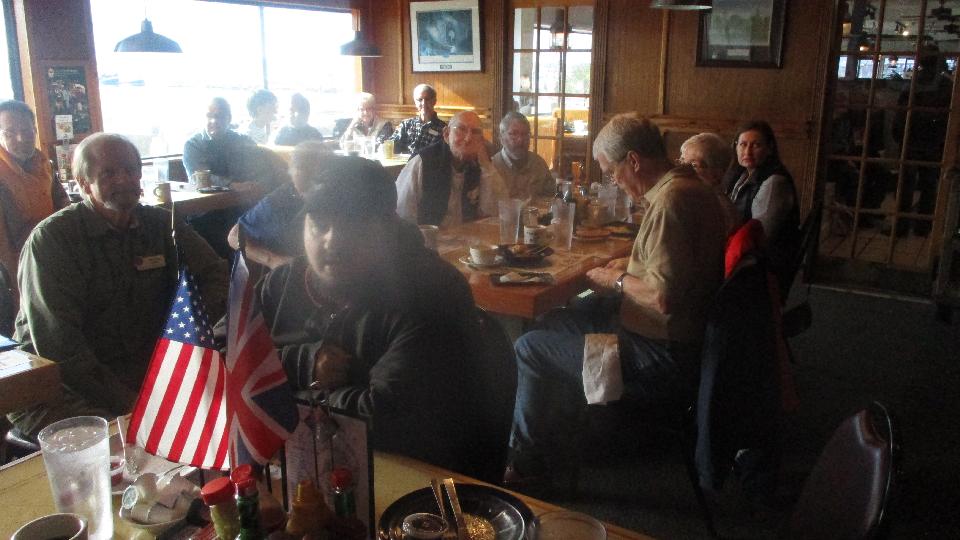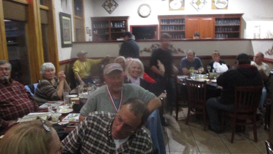 at Maggi D's restaurant in Myrtle Beach, SC. We have been chasing this club for nearly four years, and finally made the connection at the right place and time. Several British cars in the parking lot when we arrived (definitely not early), and about 35 club members present. Apparently the restaurant closes at 8:30pm, so there was a time limit for the club meeting. But there was enough time allowed for a little presentation by the MGA guru, quite well received I recon.
