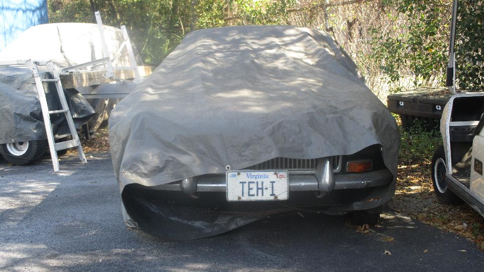 same E-type before, last time having installed a new clutch slave cylinder and hose. Since then someone else had installed a new master cylinder, and now the rear bumper was off for a swap. Today I would figure out how to make it run better (like at least minimally drivable). Someone had hot wired the electric fans so they ran all the time the ignition was on. Reconnecting them in original configuration was successful with the thermal switch working, so no idea why someone had hot wired it.