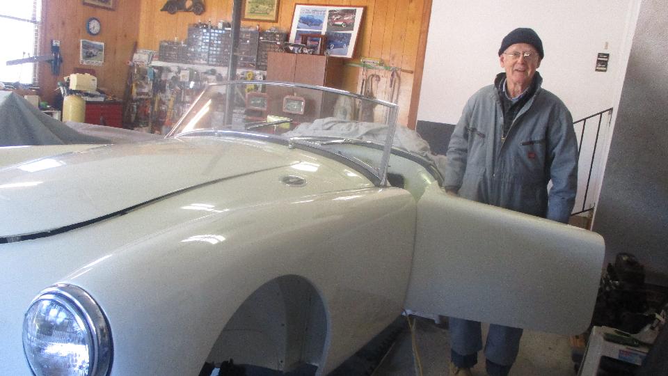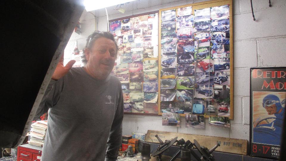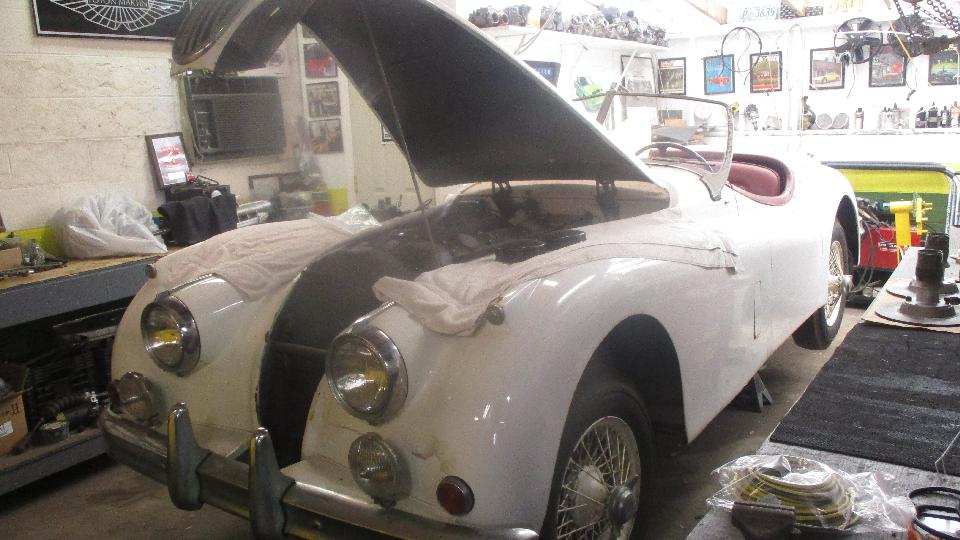 More cars in process are a Morgan Plus 4, a Triumph TR6, and an all original Jaguar XK 140 OTS. Customer instruction on the Jaguar is, "Do not touch the patina".