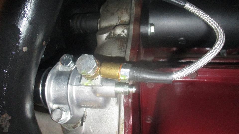 Next issue was difficulty bleeding the clutch. That was easy to explain, as the supply hose and bleed nipple were switched on the slave cylinder. This is a common problem when the replacement cylinder is shipped with the bleed nipple installed in the end port (a matter of convenience for packaging). The Service Parts List also shows an option for hose connection with a banjo fitting, but that only applies to very early production cars with two side ports on the slave cylinder. The end port is actually at the bottom of the cylinder, so you can't get the air out that way. Easy to understand once you see where the bleed port drilling goes inside the cylinder. Quick fix to swap the hose to the end port, and even had parts left over when finished.