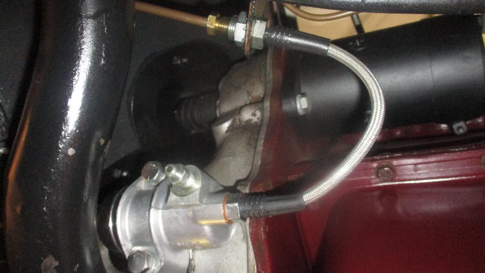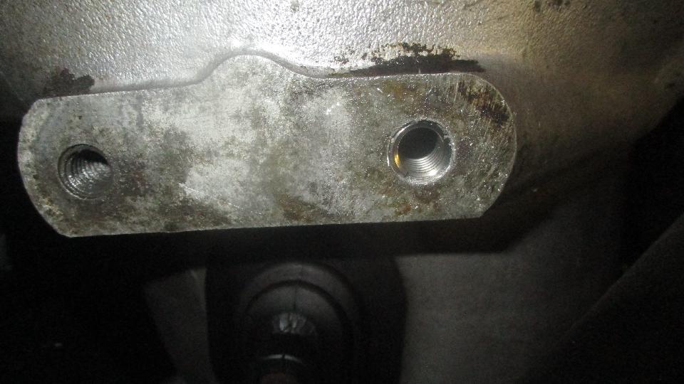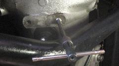 That done, I found the slave cylinder mounting bolts were loose, and the top bolt had stripped threads in the bell housing. That required a quick trip to a local parts store to pick up a 3/8-16-UNC Heli-Coil kit(because the magic trailer only had fine thread Heli-Coils). Not long to run through the special tap, then use the special tool for insertion of the Heli-Coil (and break off the drive tang), after which we had fresh stainless steel threads in the aluminum gearbox case. Sure glad the other hole wasn't stripped, because that one is above the frame tube (so the engine and gearbox would have to be moved forward for access).