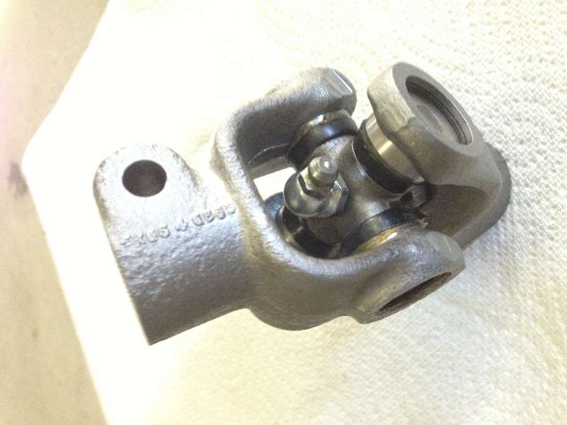 The last item was a new universal joint coupling for the steering column. Mine was loose in the splines, which does have a prescribed fix (if you want to spend a little time fiddling with it), and the bearing spider was a little loose needing replacement (more fiddling). I had just bitten the bullet to pay $129.99 for a new one when they brought out this little aftermarket replacement part. It is the right length with the correct