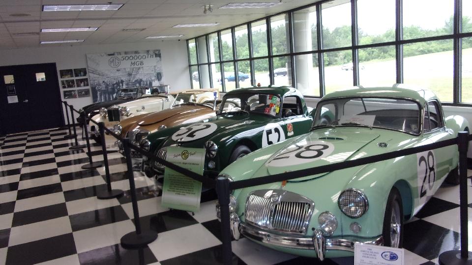 Virginia to restock the magic trailer. While waiting for parts I always bop around the display floor to see if there might be anything new. On the left was the Triumph Sports Six, the Austin Healey 100 "Grace", the MG Arnolt Coupe, and the Triumph Italia 2000 Coupe. On the right were twp Sebring MGAs, the 100,000th MGA, the Moss Motors MG TD pickup truck, and what may be the lowest mileage MGB on the planet. Nice, but they have all been here before. Find the earlier pictures.