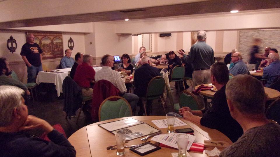 Thinking we had plenty of time, we took the scenic route west from Crown Point, Indiana into Illinois (to avoid some of the Chicago area traffic). There were a few traffic delays, but with the change in time zone we managed to arrive in Elmhurst, IL exactly at 7-pm CDST in plenty of time for dinner before the CMGC monthly club meeting. We had 33 attendees not counting the wait staff.