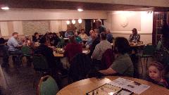 The young guy with the beard and two kids in tow is Seth Jones, curator of the www.SpridgetGuru.com web site. Single guy in foreground is a new member, all excited to own an MG. To top off the evening, the person who won the 50/50 raffle donated the proceeds as a gratuity to the bar-keep, and boy was she happy. We had a lot of old friends and a few new ones to chat with, and I recon we were the last ones out sometime after 10-pm.