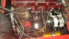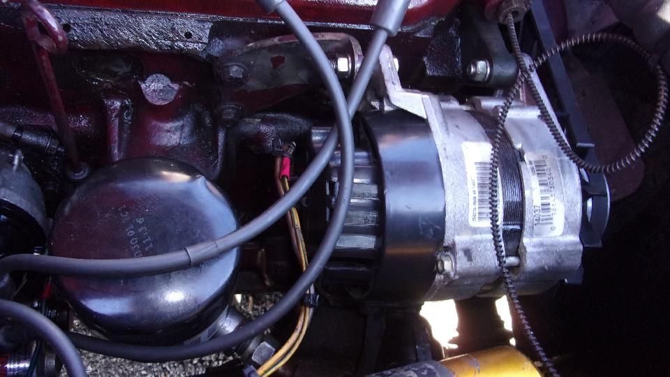 the warehouse, and it was waiting for us when we arrived two hours later, on the east side of Indy. We may have just set a new record for distance driving on battery power with no charging, 600 miles in 9 hours of running time (everything switched off except ignition and fuel pump), and it still had 10.5 volts, and would still crank start the engine. Sorry about no pictures here, but it's just an alternator, and we were busy installing it, and then anxious to get rolling again.