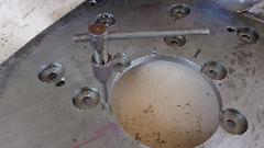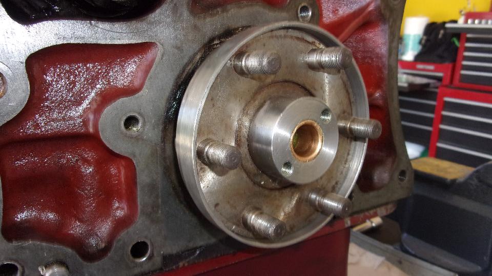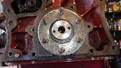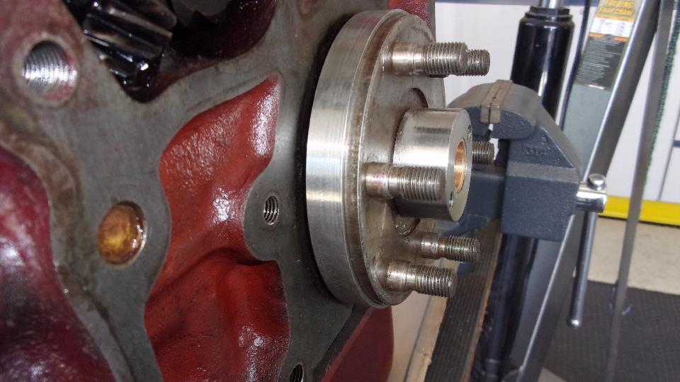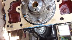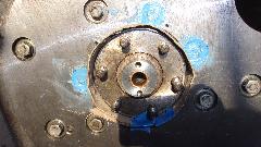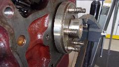 Today we would be helping to install a rubber seal modification for rear of the crankshaft in Chuck's MGA 1600-MK-II. Machining had been completed for the slip ring, enlarged hole in the rear plate, and modification of the shaft seal. We still needed to locate, drill and tap a bunch of holes before final installation. First move was to install the tight interference fit slip ring on the rear of the crankshaft. A bit of persistent gentle hammering and tapping got the slip ring started onto the crankshaft rear flange. Continue gentle tapping all around to push the ring farther on until it was flush with the crank flange. Then install the flywheel where tightening of the bolts pushes the ring farther to the final resting position, overhanging forward near the engine block while still hanging onto the forward half of the crank flange (the part not occupied by the flywheel pilot counterbore).