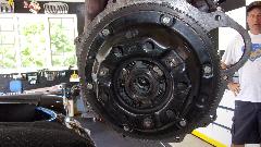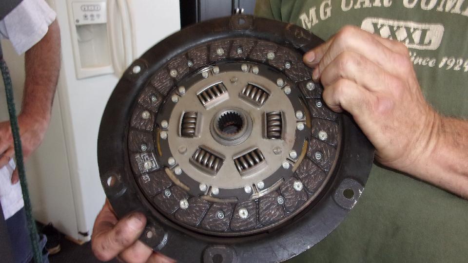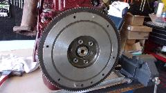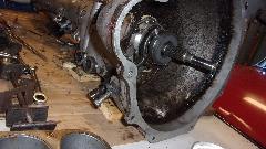 Meanwhile the guys had assembled the flywheel, clutch disc and pressure plate on the engine and were intent on dropping it into the car. After a lot of pushing, shoving an sweating, it was decied to be a lost cause when the gearbox input shaft wouldn't engage into the spigot bushing of the crankshaft.