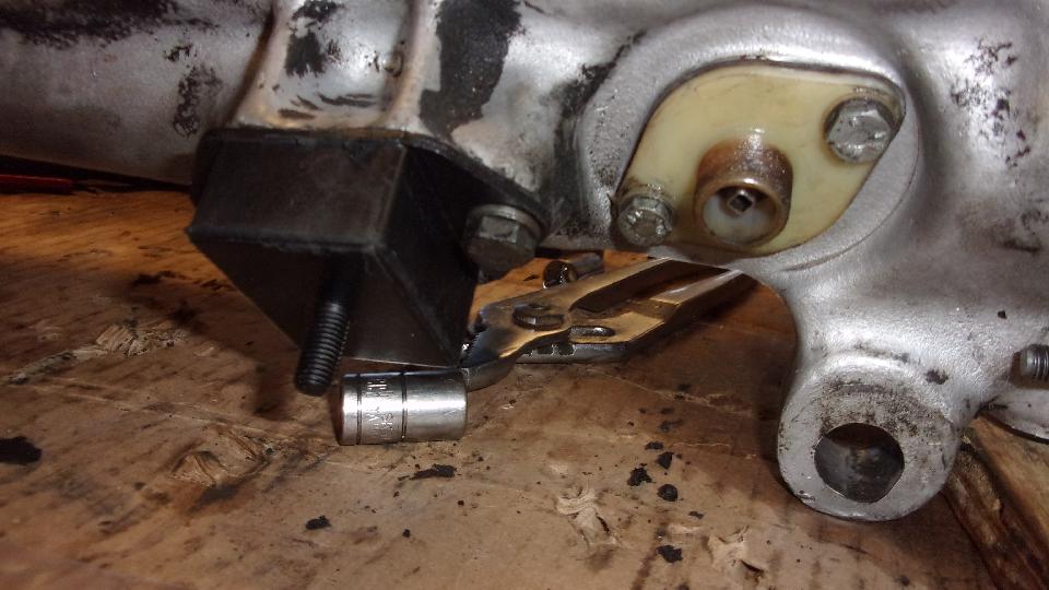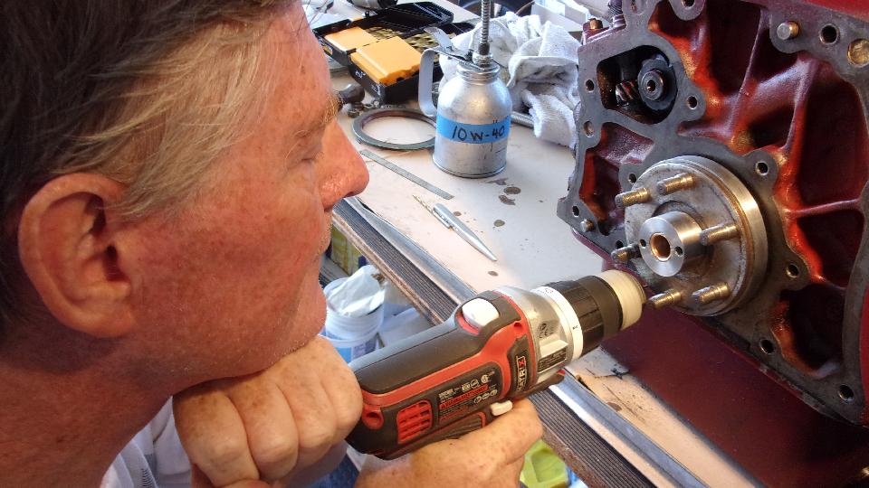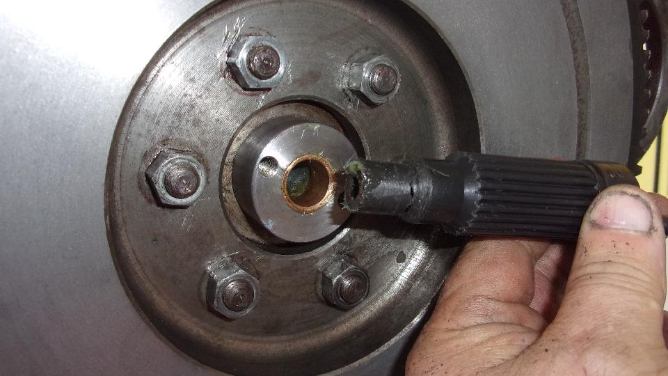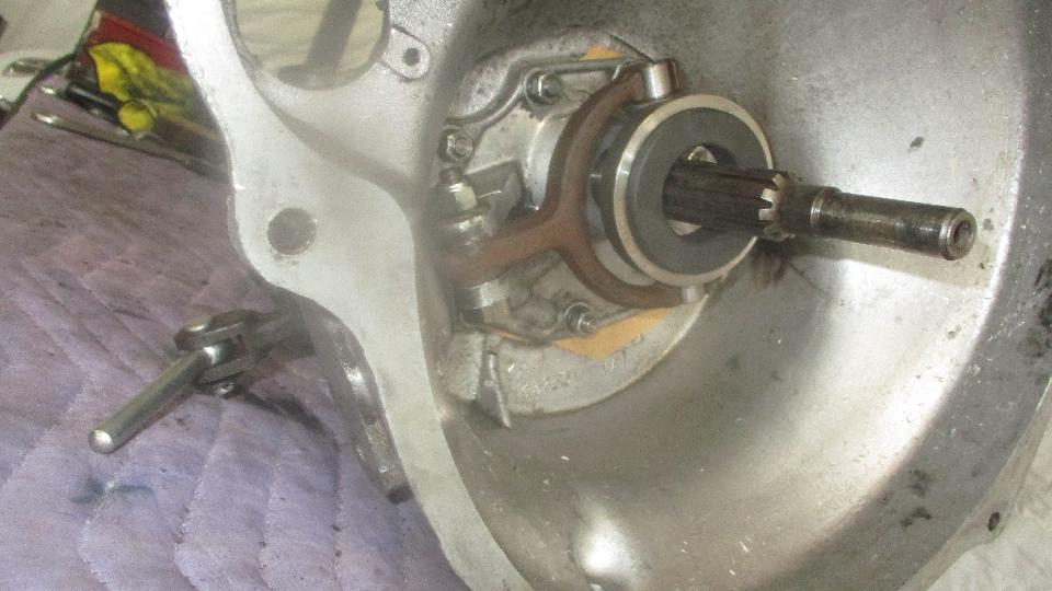 Someone admitted they didn't have the proper clutch alignment tool (rats), so we pulled the engine out for rework. We chucked the standard alignment too in a power drill, spun it and ground it down and cut it off with a hacksaw and file, and got the clutch back together again with proper alignment.