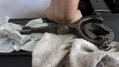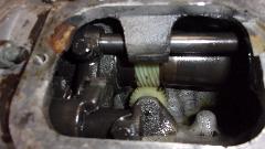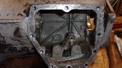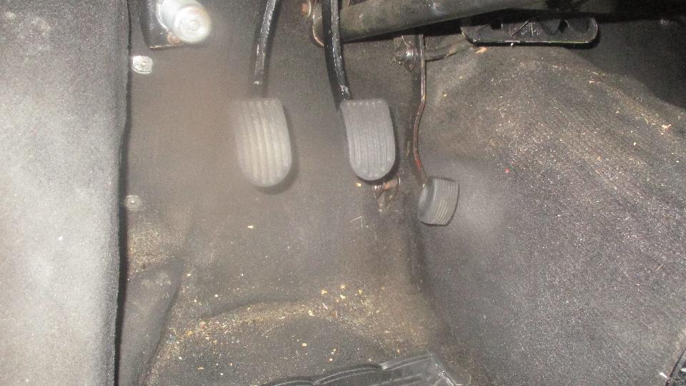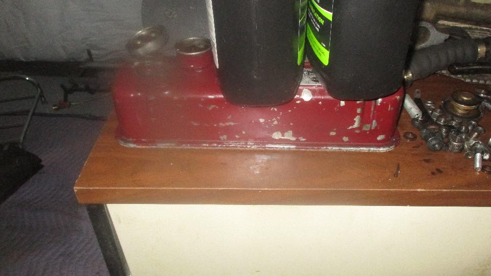 Another finishing touch on the gearbox, installing the shift motion limiting plate with gaskets. Glue the pedal pads onto the pedals to prevent them from continuously falling off, and put a few staples in loose carpet. That ran into dinner time, but evening had enough time left to clean the valve cover and glue on a new cover gasket, and weight it down so it will be flat and dried in the morning.