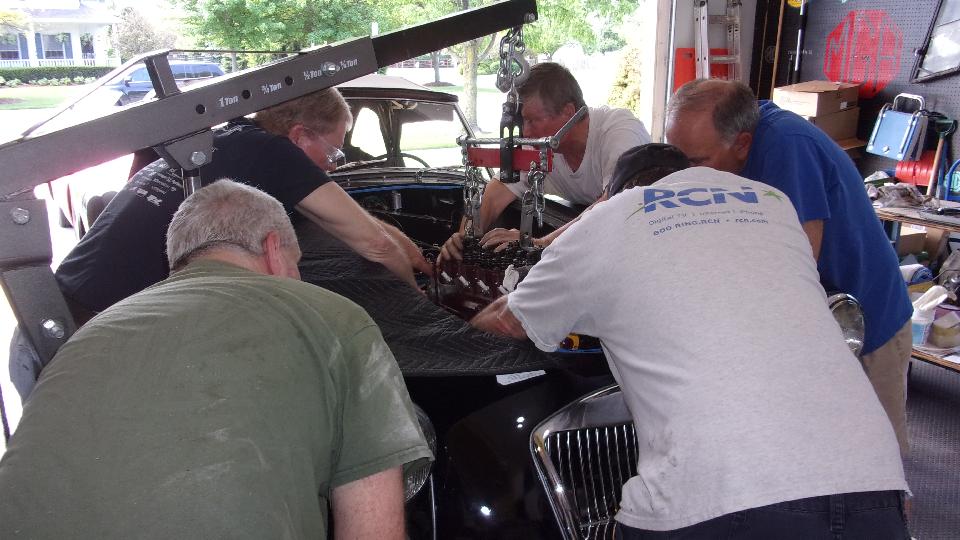 Then we got busy (busier), and the work load was a bit hectic, no time for pictures. Carburetors on and linked up, radiator and hoses in and connected, fluids installed in gearbox and engine. Somewhere past 11-pm the engine fired up and ran crappy, not wanting to idle. Resetting timing helped some, at least enough to get a steady high idle where we could work with the carburetors. I figure we were maybe 20 minutes away from a sweet running test drive when it was time to call it quits at midnight. Hard to believe we spent 15 hours today sorting out a lot of odd problems in addition to installing the engine. Tomorrow should be a scheduled day off. Maybe come back Monday for the final touches.