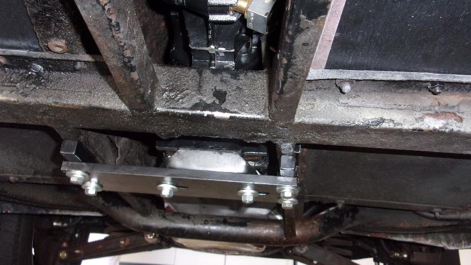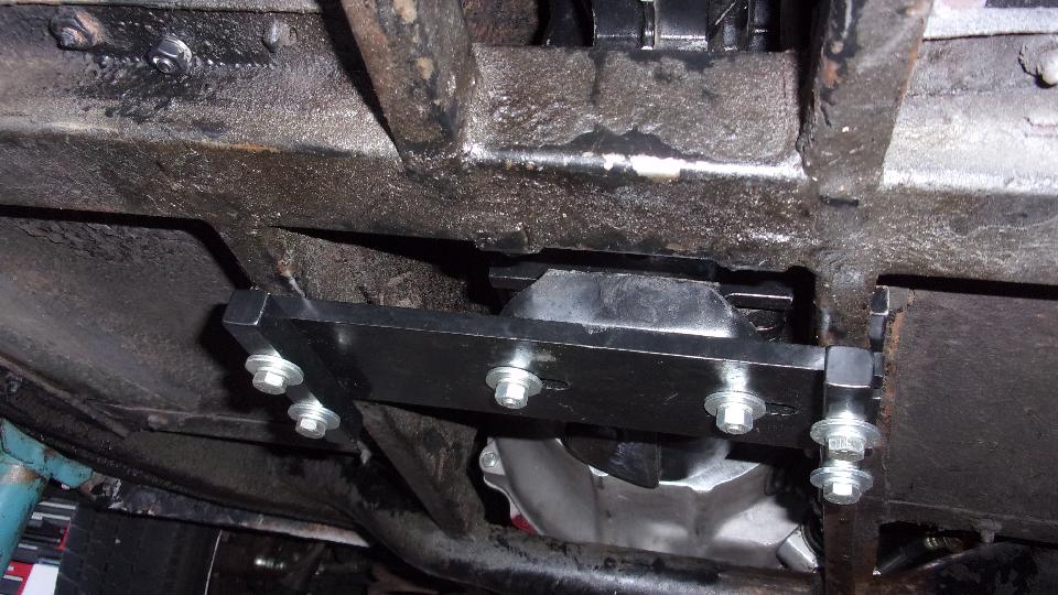There was a momentary pause of concern when the clutch slave pushrod didn't line up (not to take the engine out again), but that was resolved with a pry bar to push the salve cylinder piston back to rest position. Then another delay while we re-arranged incorrectly installed 5-speed gearbox mount parts to drop the gearbox 3/4-inch.