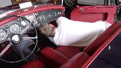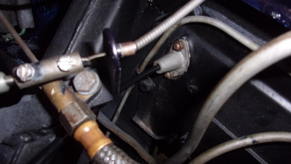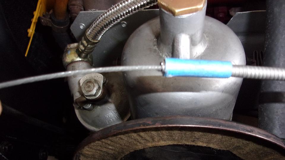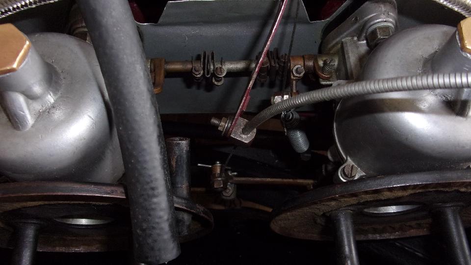 Wandered back to Chuck McCallum's place today for the unfinished business. He was driving the car a bit when it suffered from frayed throttle cable and stuck on very high idle speed. So we installed a new throttle cable, trimmed the choke cable a bit shorter, followed by nice carburetor tuning, and it runs like a champ. Took a nice cruise in the car with the new 5-speed gearbox he had not driven before, big grins all around.