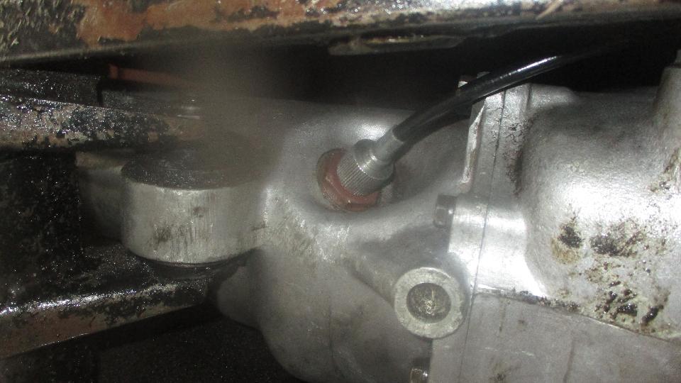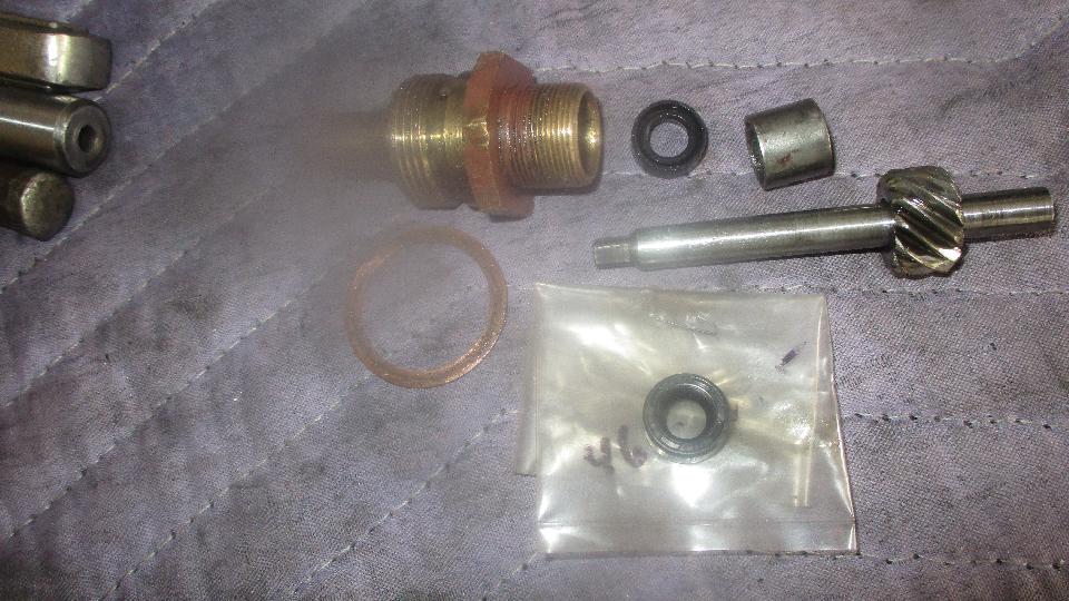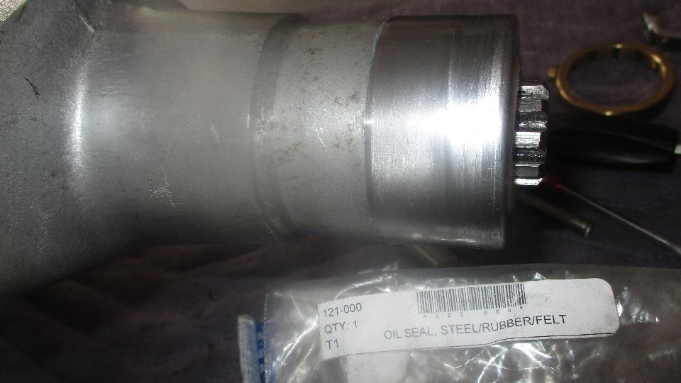 Having found the rear seal, only the front seal was still missing. So, consult the MGA Guru web pages to find cross reference numbers for the front seal. Called NAPA to check on a NAPA number, not in stock, and all of our other numbers kept referring back to the NAPA number. One was a Ford part number, and there was a Ford dealer nearby, so we tried that. Not in stock, but the Ford guy referred us to O'Reilly Auto Parts for a National part number. Not in stock at O'Reilly either, but they can get it first thing tomorrow morning. Yahoo, beat the airplane. Also installed a new seal on the gearbox speedometer drive pinion shaft. Really needed it I guess, because after removing the retainer sleeve the seal fell out by gravity, not sealed around the OD, so I suppose that will stop another small leak (below oil level).