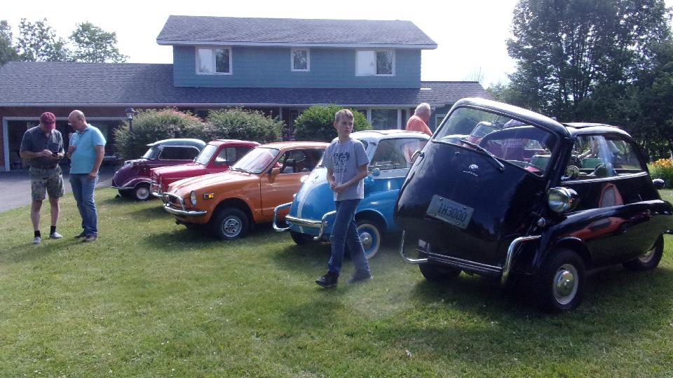 Two Isetta, Honda 600, Vespa 400, a Messerschmitt, and two more Isetta.