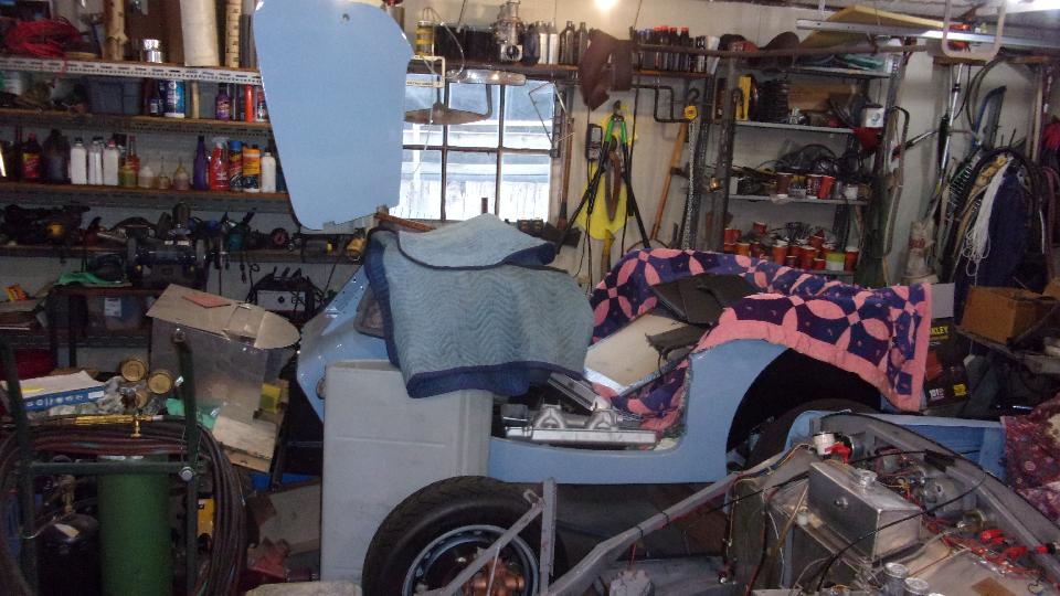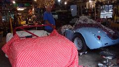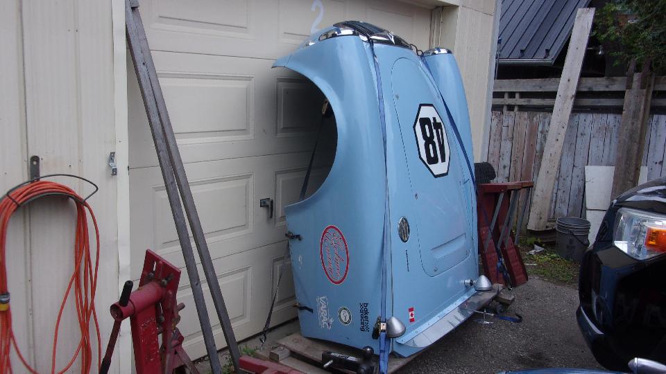 That's an MG TD under the blankets with restoration pending final assembly. In the trailer, tee racing Twin Cam.