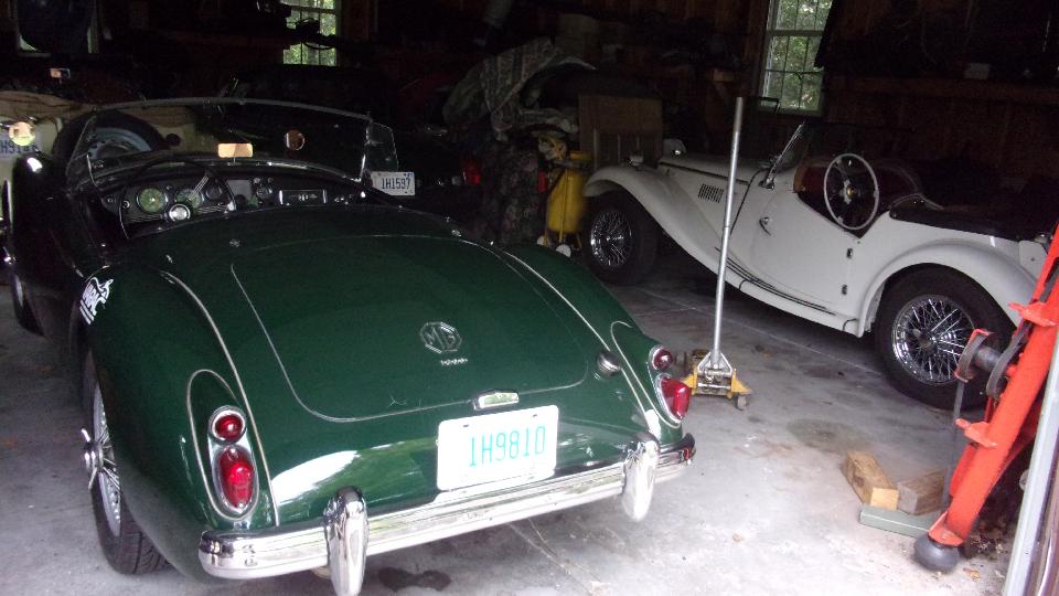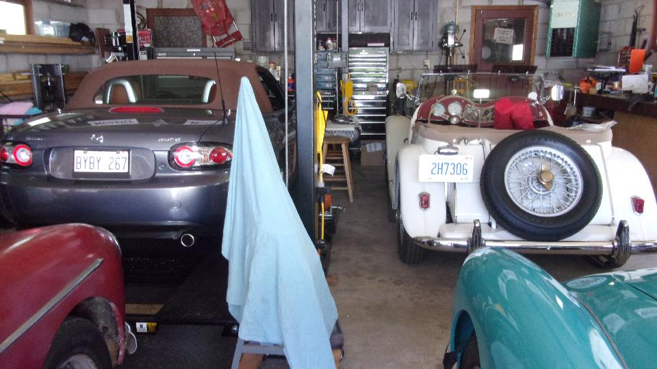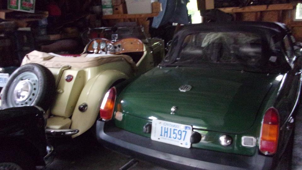 Two more double garages holding a TD, late model MGB, another MGA ad a TF. These would be the daily driver street cars. If you managed to count all these, you're better than I.