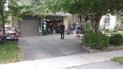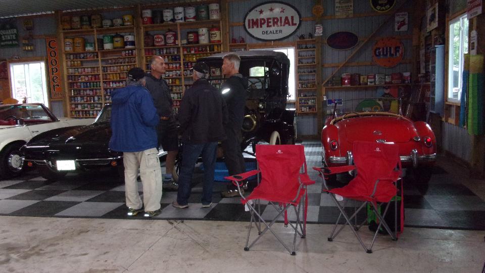 Supposed to be a day off to catch up grunt work, sitting in a WiFi spot in Brantford, Ontario, we were greeted by a walk-in. This lady had met us at the club barbecue the day before, and was recommending that we should drop in to visit her husband and check out his toys. As it turned out, the home was less than three miles away, so of course we would. This turned out to be Colin Tyrell, and we had been checking out his MG ZB Magnette the day before. Additionally there was a very nice MGA 1500. On closer inspection the garage turned out to be two cars deep, holding also an MG TD and a Mazda Miata (which was sitting on a drive-on lift). At the back another door leads into a wood working shop, which in turn has a drive-in door on the side of the building. Nice garage. After close inspection of the toys we sat for a beverage and an hour (or more) chat before heading back to WiFi work.
