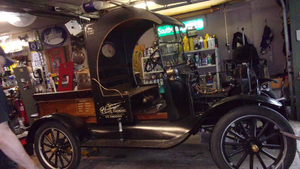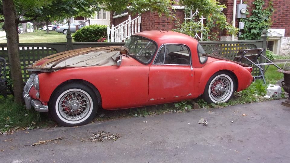 But wait. This is an interesting neighborhood. On the street we found Ford Model A and Model T, and hiding in a driveway an unmistakable MGA Coupe. Gotta check this out.