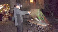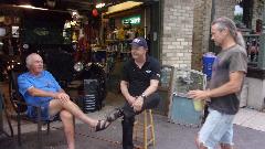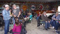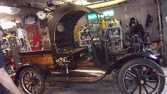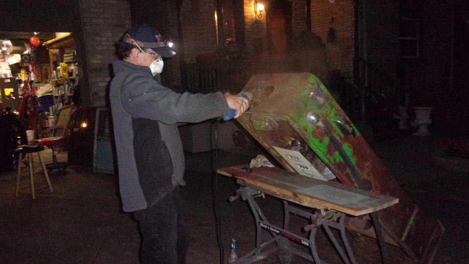 Okay, different strokes for different folks. The C-cab truck is a hoot, belongs to the guy with the hat. The guy in gray shirt drives a vintage hearse for car shows. As night fell we left the scene with a vintage gas pump getting rust ground down for restoration.