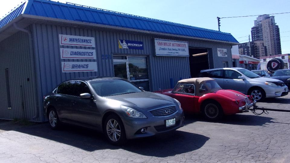 So we dropped around to visit Van Holst Automotive Ltd in Waterloo. Nice shop with a few British cars currently in process. They report doing about 30% of their business on classic British cars, mostly maintenance