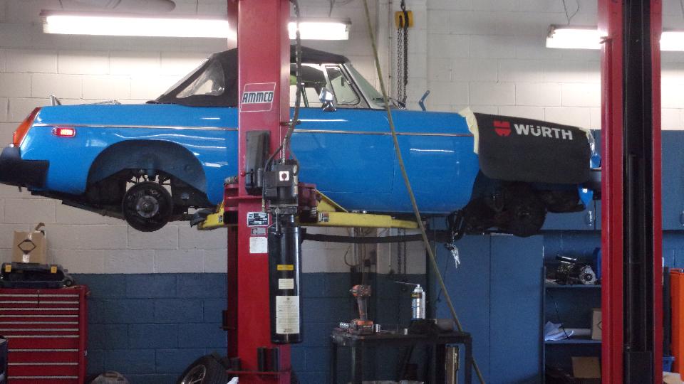 during the driving season with a lesser amount of restoration work year round. The MGB on the hoist was in for a ring job. Not all British cars, but I think they rank pretty high on the schedule priority list.