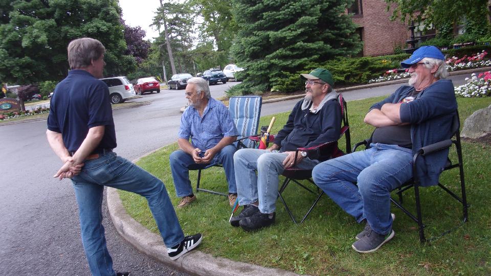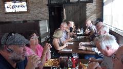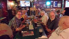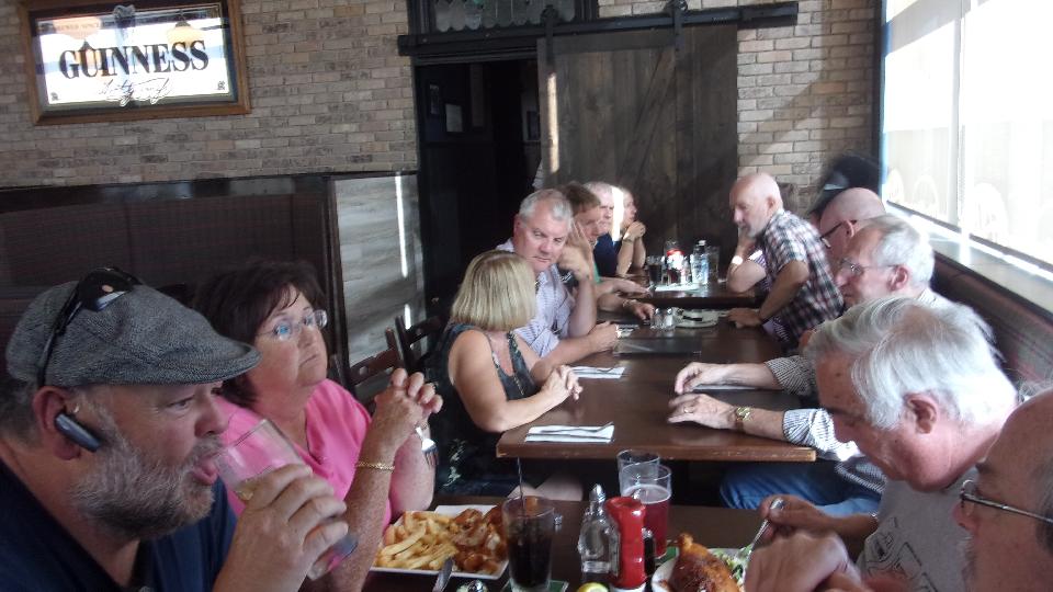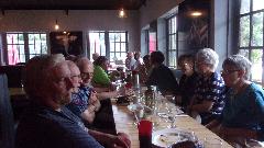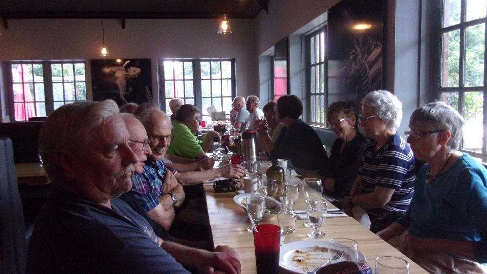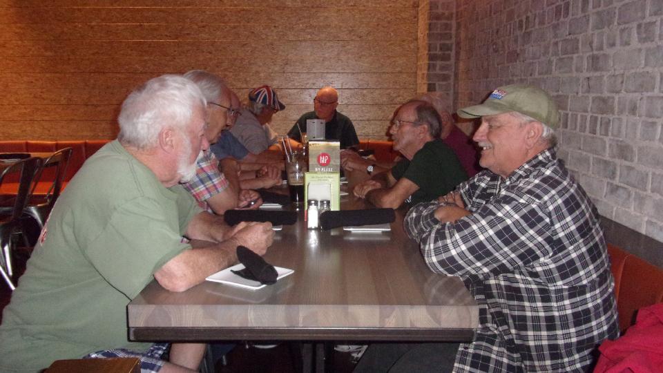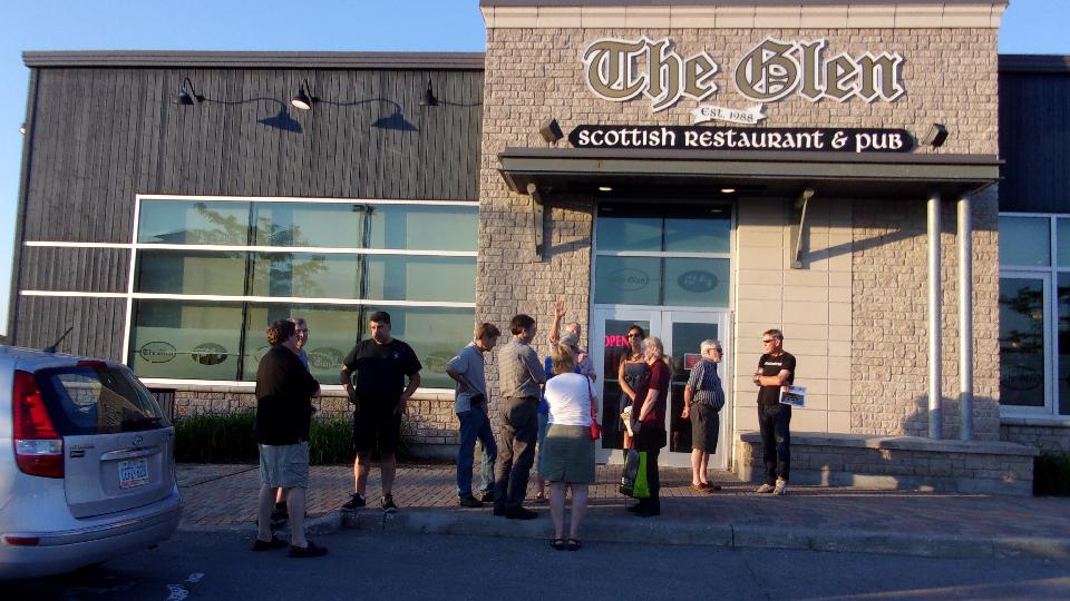 In the evening,we had a dinner meeting with Ontario MG 'T' Register, pub night Niagra at the Smoke and Moonshine restaurant in Beamsville, ON. Outside we found two Porsche and one Miata, no T-types. Inside a bit of a challenge to find the folks we had never met, when there was no record of a reservation under the club name or our friend's name, but we did find them after a while. Twelve people including the two of us.