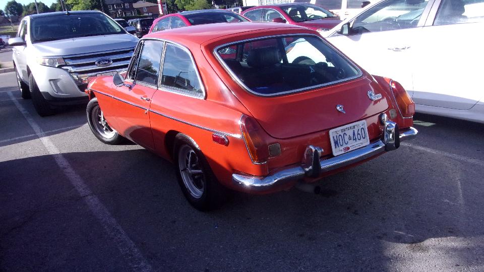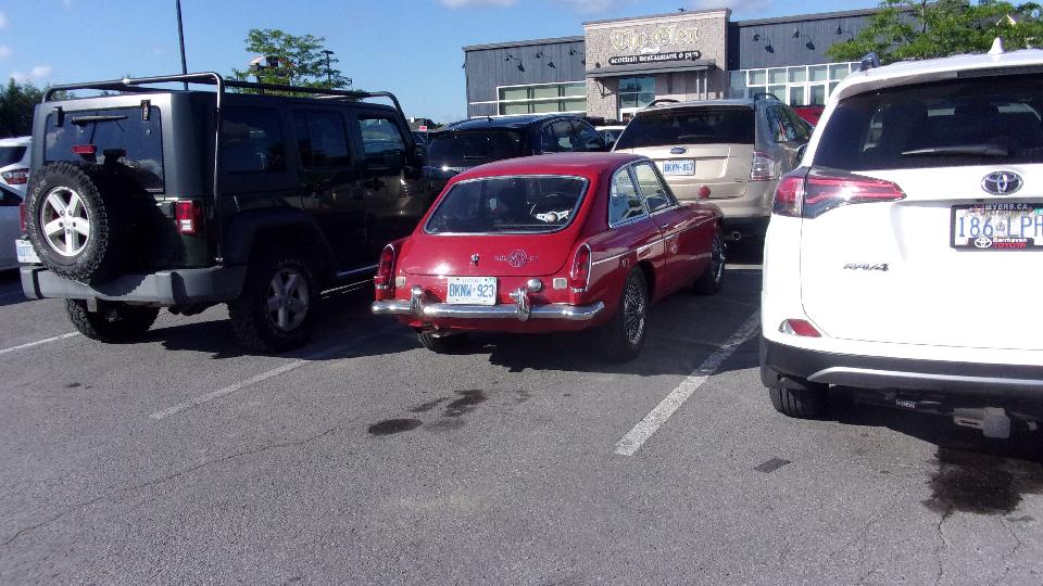 No problem getting into Ottawa today as we had a dinner meeting with Ottawa MG Club at The Glen Scottish Restaurant in Stittsville, Ontario. Parking was spread around a large crowded lot, but I snapped whatever MGs I could find. We got an MGB, MGB-GT, MGF, and an MGC-GT (sweet).