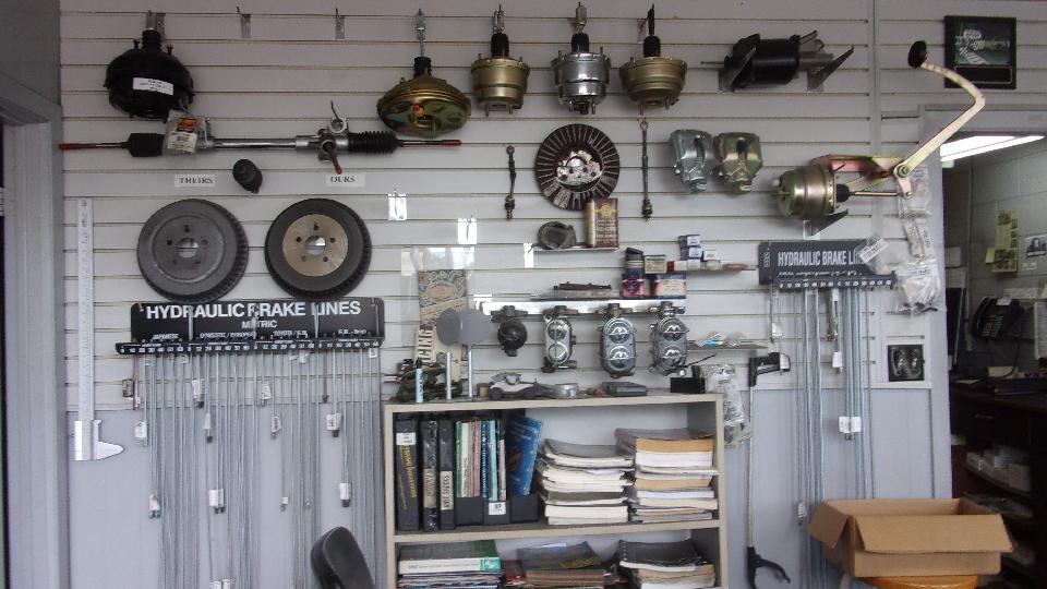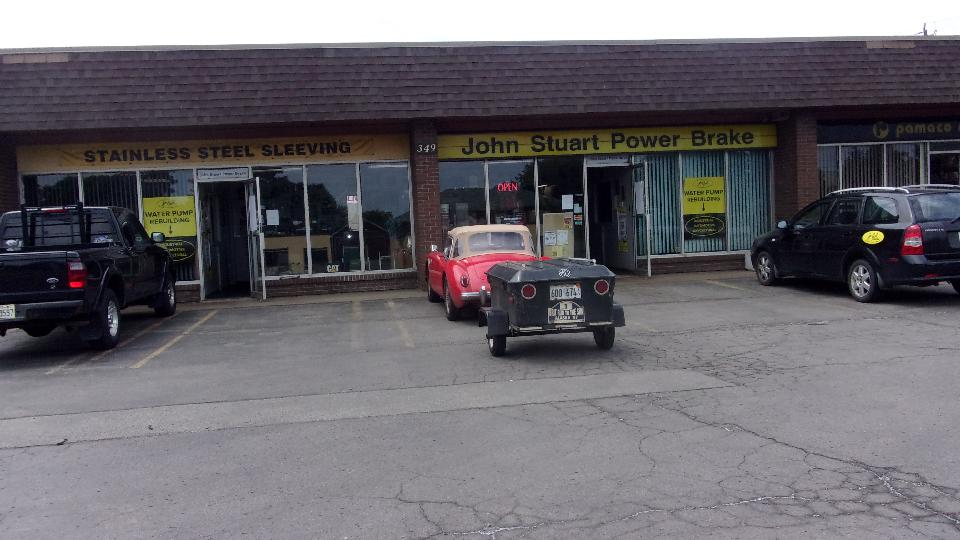Hey we got week day open, so time to do a little shop hopping. First stop was John Stuart Power Brake in Stoney Creek, Ontario. They remanufacture power brakes and steering components, and sleeve hydraulic cylinders. Notice the British Car Day poster in the front window. Yes they do vintage British car parts, and they know Dunlop brake calipers for the MGA Twin Cam.