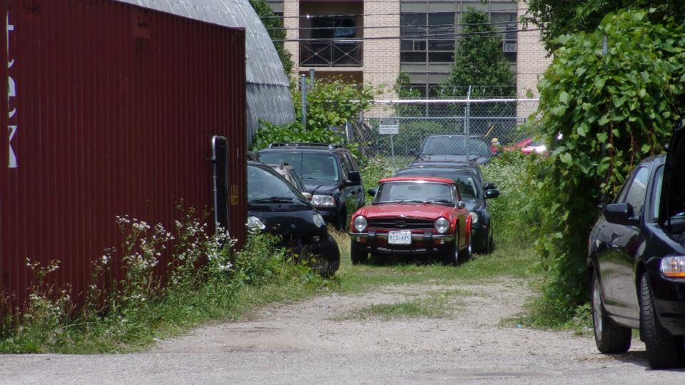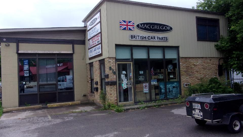 We were making a stop to visit MacGregor British Car Parts in Dundas, Ontario. They supply factory original trim parts for all marques and models. My correct fitting boot lid seal came from this place. But I recon we spent too much time chatting with Fred at the last stop. We muffed the cardinal rule of shop visiting between 9-am and 4:30-pm, missing this one by 15 minutes. I really wanted to see this guy, so may take another shot at it later.