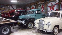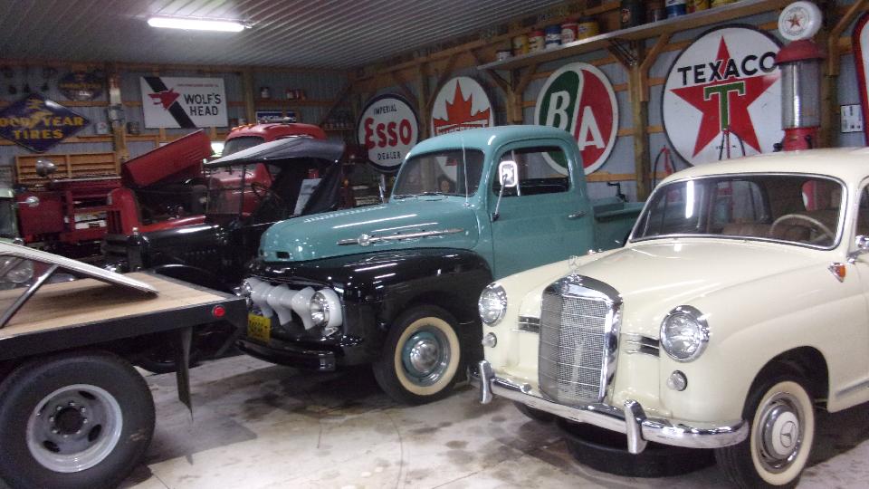 There was a Mercedes 190 which caught my fancy, as I was driving a 190D (D for Diesel meaning slow with four in the tree) for a while when I was in High School. Next in line was the 1951 (or 52) Ford F1 half ton truck (with three in the tree). I also used to drive 1947, 1950, 1953 F1's (all of those with four on the floor, a granny gear, and mostly sliding gears). The first tractor was a Rumely Oil Pull (kerosene fueled) built in Laport Indiana, possibly prior to 1920. The one behind it, likely a little earlier. Behind that the green Model A Ford, and far right a Model T truck, and a nifty trailer hitched behind the Model T.