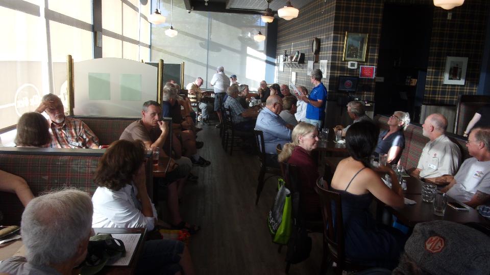 This is a surprisingly large club for MG only, turning out 50 to 60 people for the monthly club meeting. Friendly people, getting down to business. Dinner at 6, meeting at 7, and out of there by 8. Rally on Sunday? I dunno.