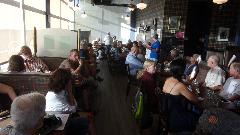 The next two are not saloons, but at least they had hardtops. Inside a nice group of 10 people meeting monthly for friendly chat. The guy front left was specializing in Minis and had just sold two of them in the past week.