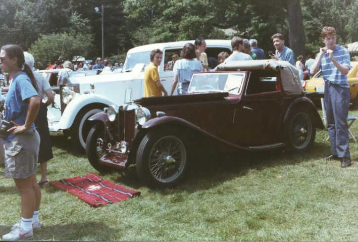 Today by mid-morning in Fairfax we make connection with Bill and Martha Ludtke of the Mid Atlantic chapter of NAMGAR. Also give them credit for being heavy into helping to make GT-14 happen. We chow down on some of Martha's sandwiches, make some phone calls, chat a while, flash some photos, you know the routine by now. We find lots of nice hardware here also, some of which is on loan. There's a B, a TF, a TC, several "A"s, a bug-eye Sprite, and a mid-50's Porsche undergoing restoration. Debbie is about ready to take the TC home, but it would be a long way to drive in an unfamiliar car (good a reason as any to say no).
